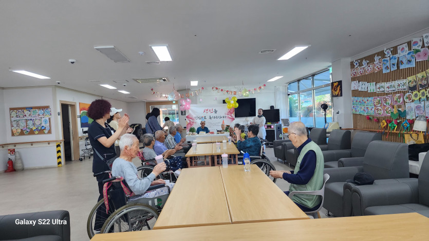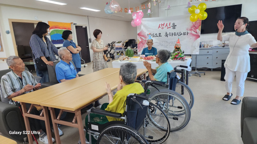 화담요양원 7월 생신잔치 관리자 2025-08-05 20:02 123 0 - 첨부파일 : 1752128513266.jpg (1.4M) - 다운로드 5 2025-08-05 20:02:15 - 첨부파일 : 1752128513507.jpg (1.8M) - 다운로드 5 2025-08-05 20:02:15 본문 7월 생신을 맞이하신 어르신들의 생신잔치를 열었습니다 민요가수님이 오셔서 자리를 빛내주셨습니다 댓글목록0 등록된 댓글이 없습니다.