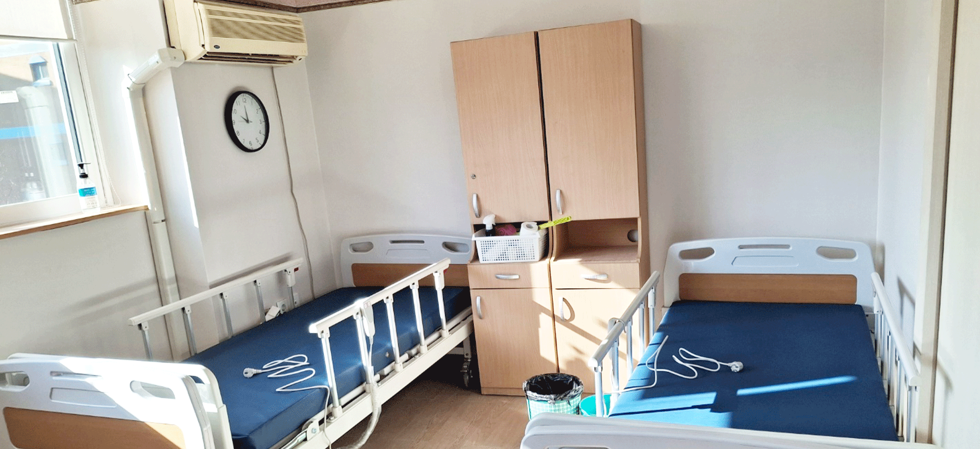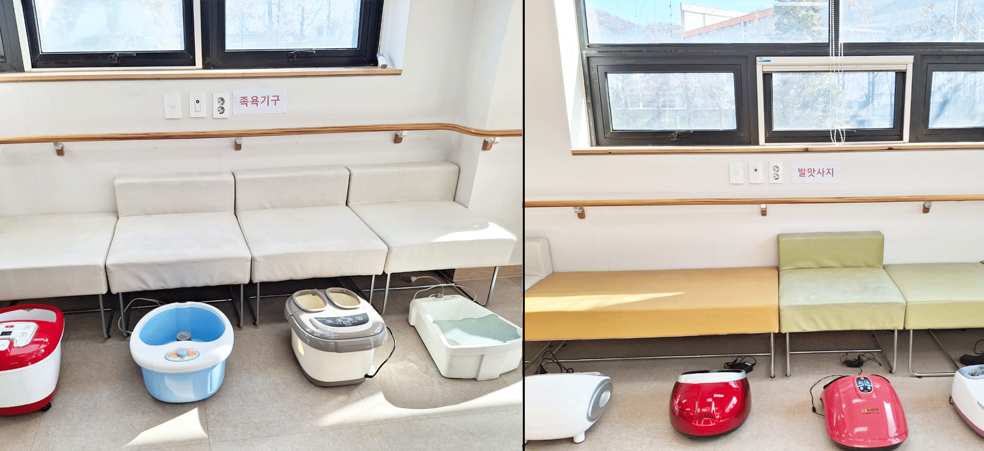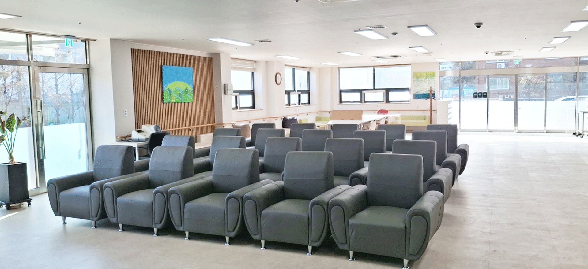 시설안내 시설현황 소재지 : 경기도 광주시 도척면 도척로 312(친우리215) 개원일 : 2025년 4월 1일 시설규모 : 대지 1,627㎡ / 건축면적 : 556.42㎡ 외부전경 정문 내부사진 로비 내부사진 휴게실 내부사진 물리치료실 내부사진 4인실 내부사진 4인실 내부사진 2인실 내부사진 휴게실 내부사진 간호사실 내부사진 주방및조리실 시설현황 시설현황 구분 면적 시설현황 3층 194.78 · 301호,302호, 303호, 304호, 305호 · 화장실 2층 556.42 · 201호, 202호, 203호, 204호, 205호, 206호, 207호, 209호, 210호, 2012호 · 세탁건조실, 프로그램실, 화장실, 간호사실 1층 546.8 · 로비, 생활실, 물리치료실, 휴게실, 상담실, 사무실, 기계실, 요양보호시설, 주방및조리실, 간호사실, 자원봉사자실 · 화장실, 창고